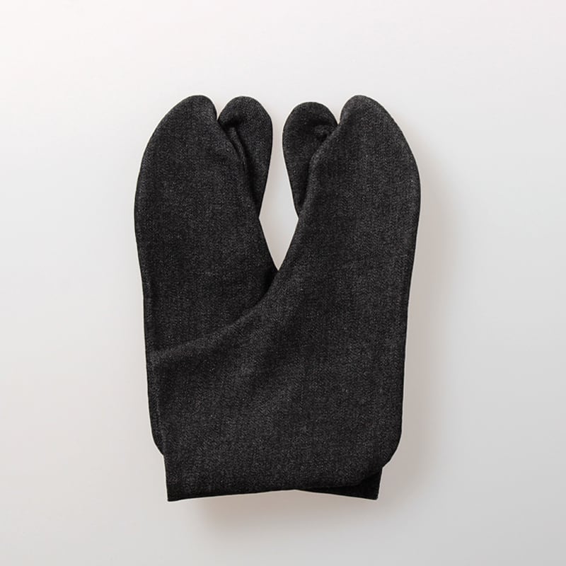横伸びする黒デニムを使ったおしゃれな足袋。